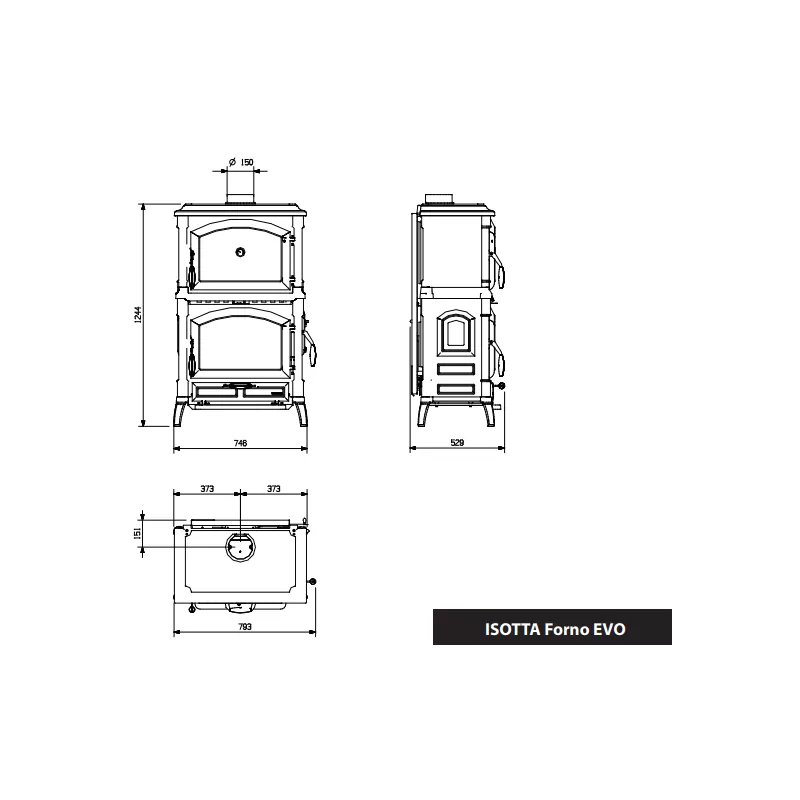 Fabriqué entièrement en fonte émaillée, l’Isotta Forno Evo est conçu pour durer. Sa structure massive de 296 kg garantit une diffusion homogène et prolongée de la chaleur, même après l’extinction du feu. Ses dimensions généreuses (795x1244x530 mm) et son design élégant permettent de l’intégrer parfaitement dans tout type d’intérieur, tout en offrant un usage pratique grâce à son four intégré et sa grille chromée.